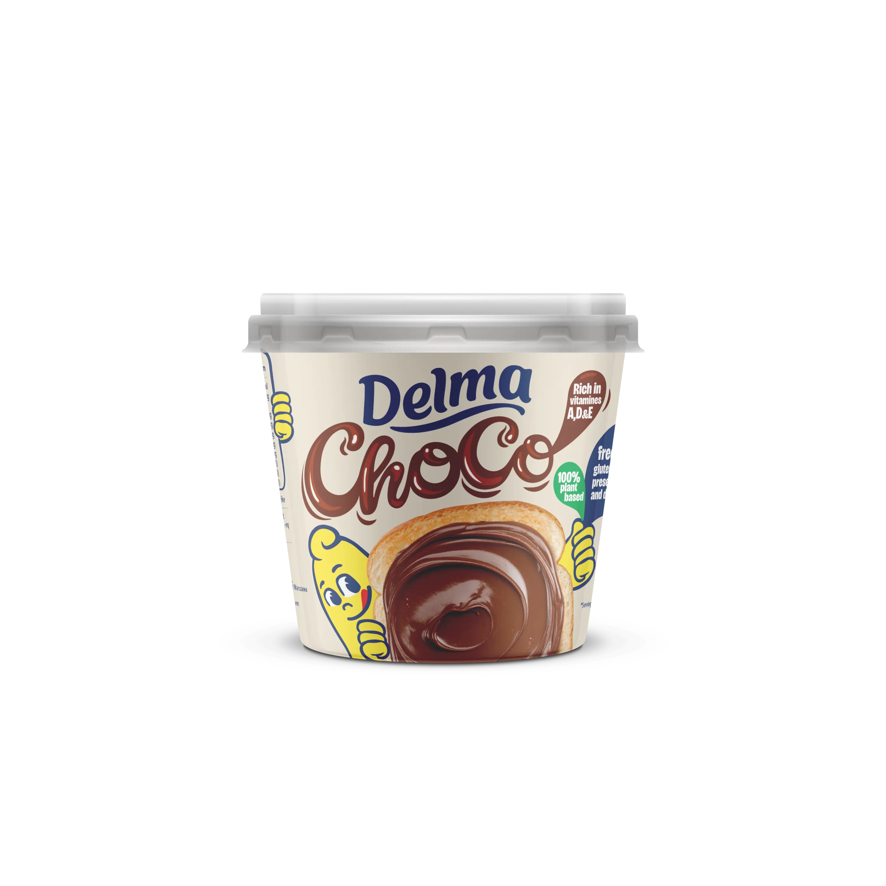 Delma Choco to krem do smarowania z kakao, który jest 100% roślinny, bezglutenowy i bezlaktozowy. Można go używać nie tylko do smarowania kanapek jak röwniez jako dodatek do naleśników, gofrow lub do dekorowania ciast 1 clasteczek.